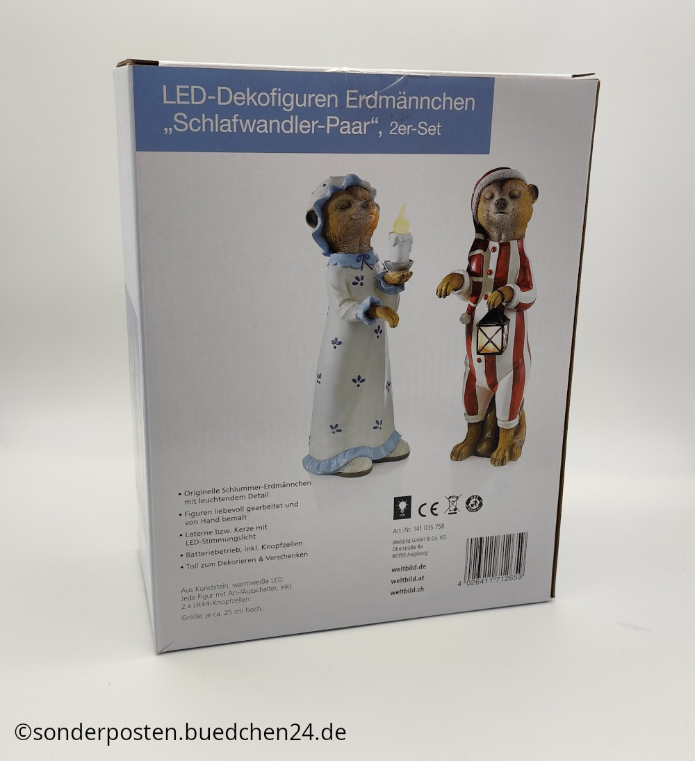 LED-Dekofiguren Erdmännchen – Schlafwandler-Paar / Höhe: ca. 25cm